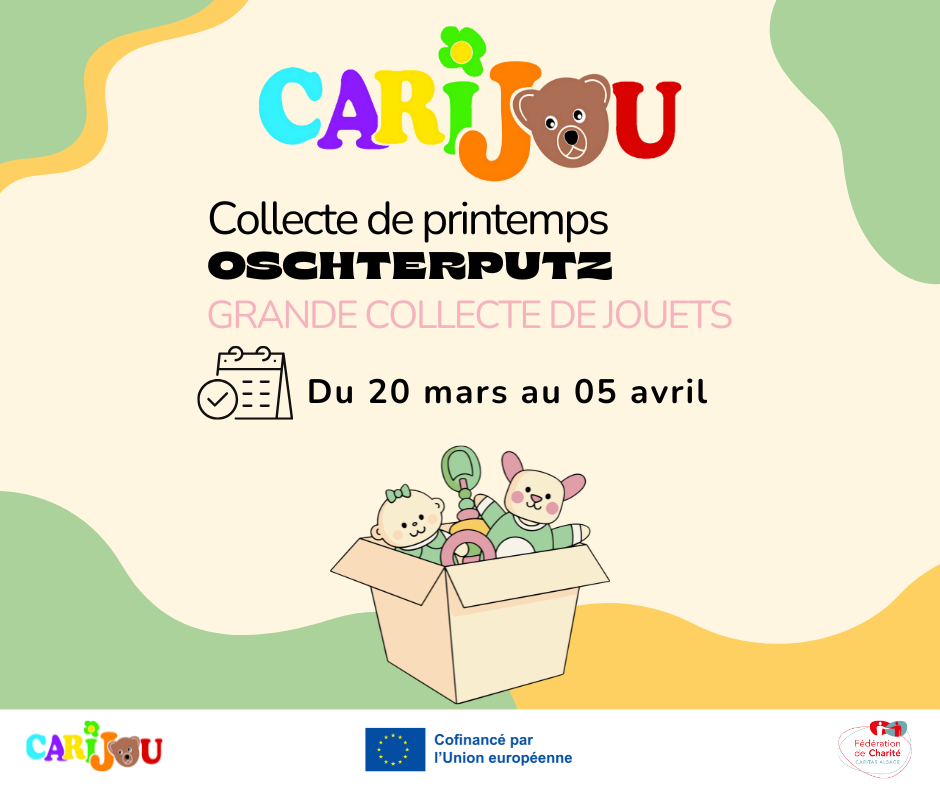 🌷 Du 20 mars au 5 avril, notre chantier d’insertion Carijou organise une grande collecte de jouets !