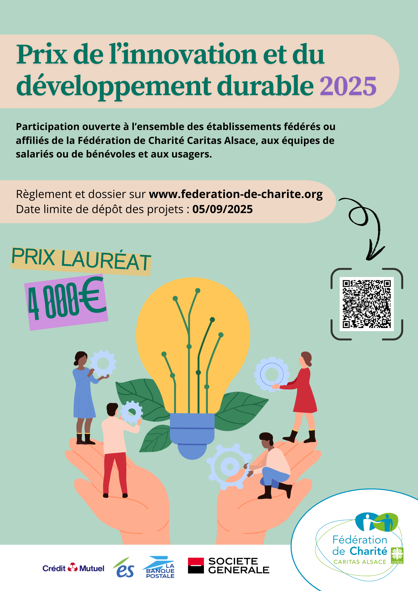 La participation au Prix de l’innovation et du développement durable de la Fédération de Charité Caritas Alsace est ouverte à l’ensemble des établissements fédérés ou affiliés, aux équipes de salariés ou de bénévoles et aux usagers.